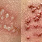 - برجستگی یا تاولهای کوچک در ناحیه تناسلی، کشالههای ران و باسن.